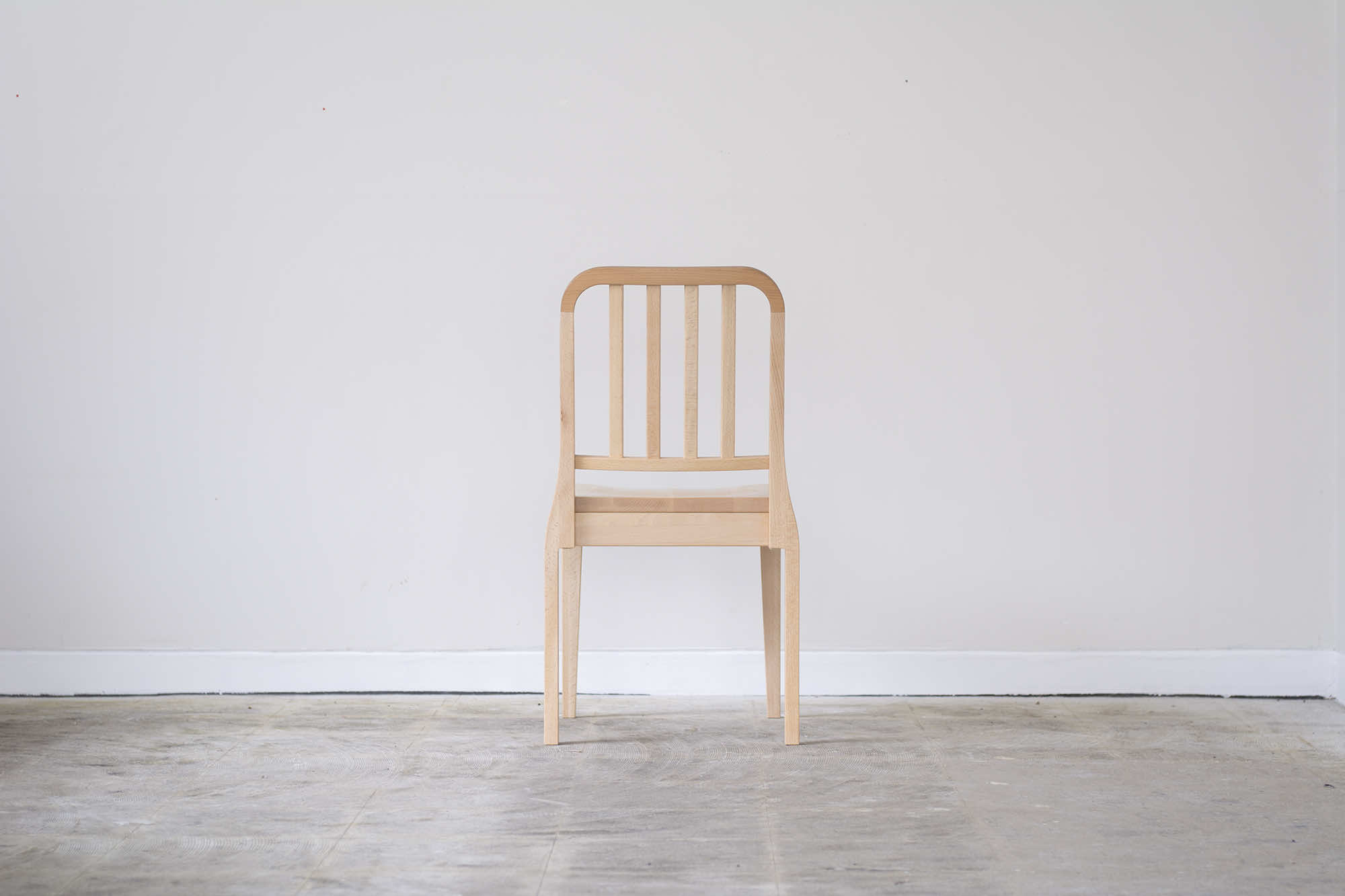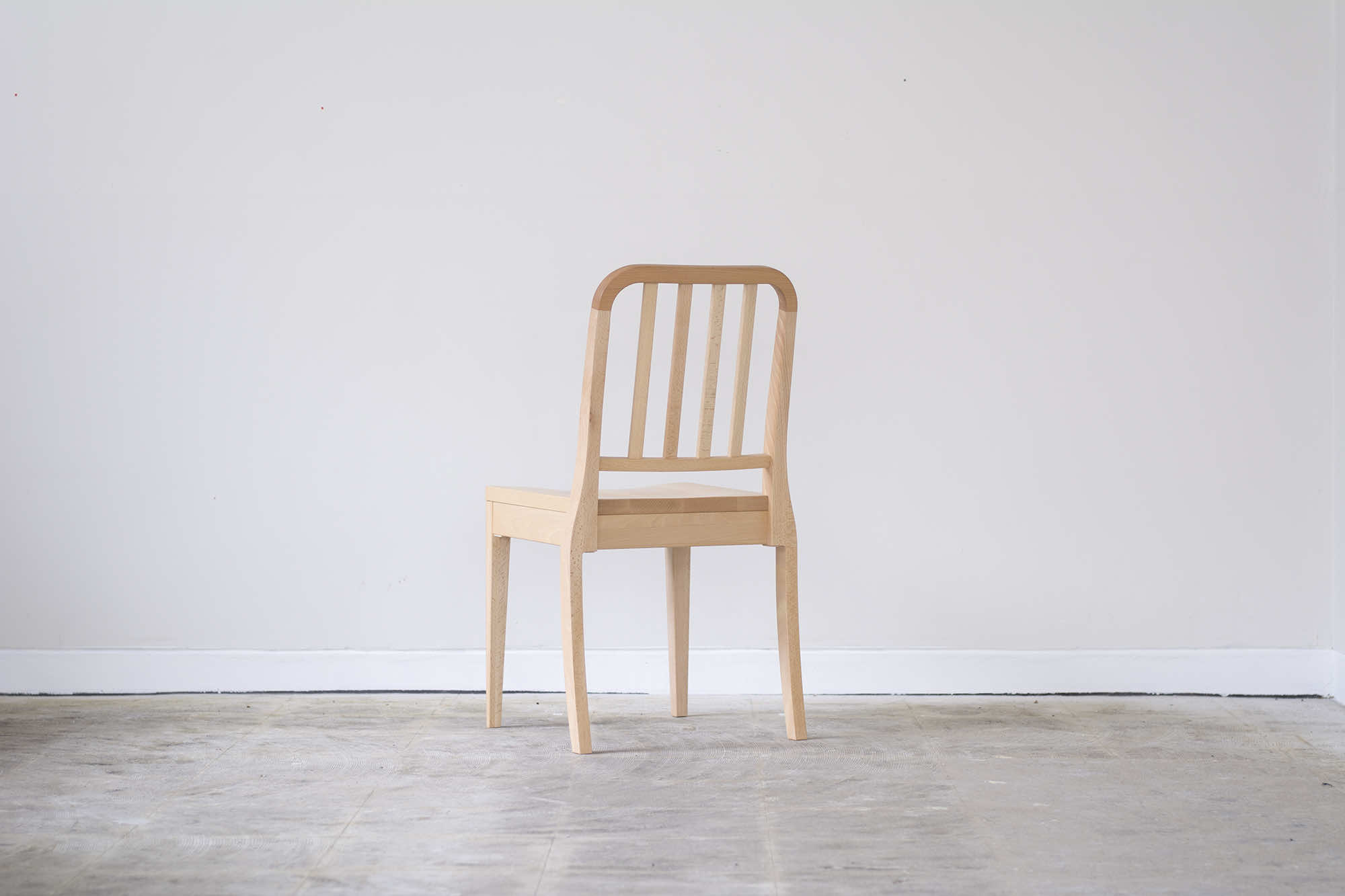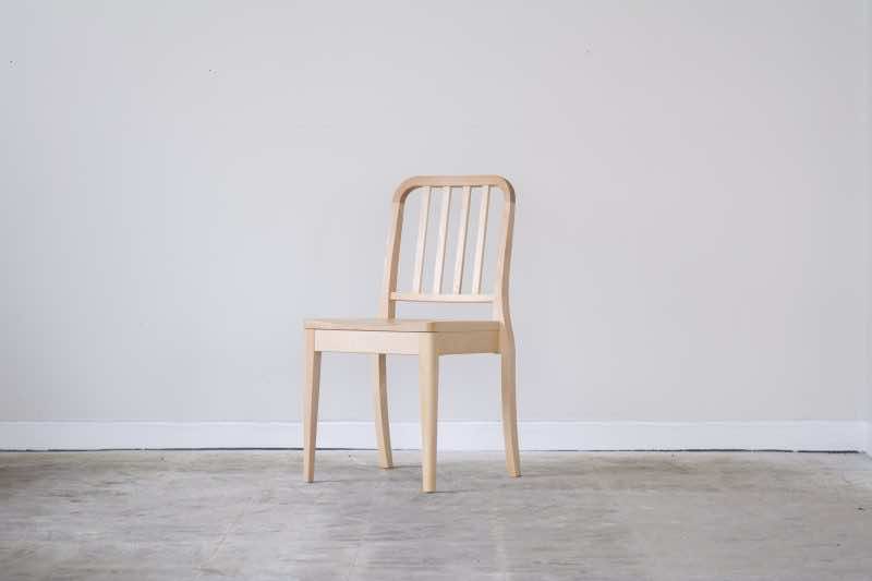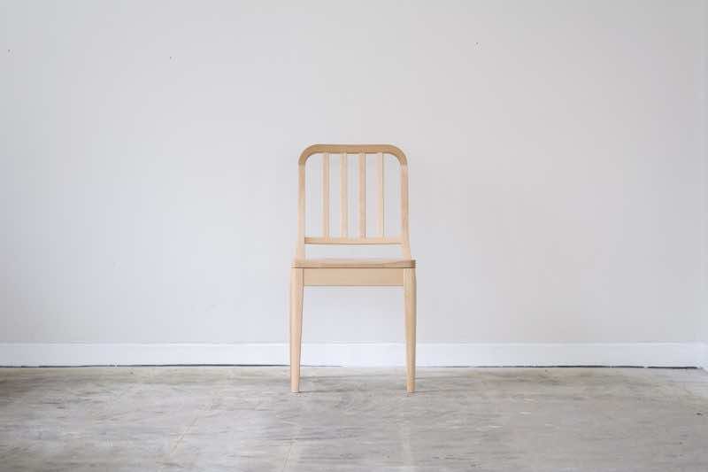 アメリカ海軍の食堂で実際に使用されているアルミ製の「NAVY CHAIR」をモチーフに、素材を木材に置き換え、スポークの本数を増やしてデザインしたオリジナルチェアです。