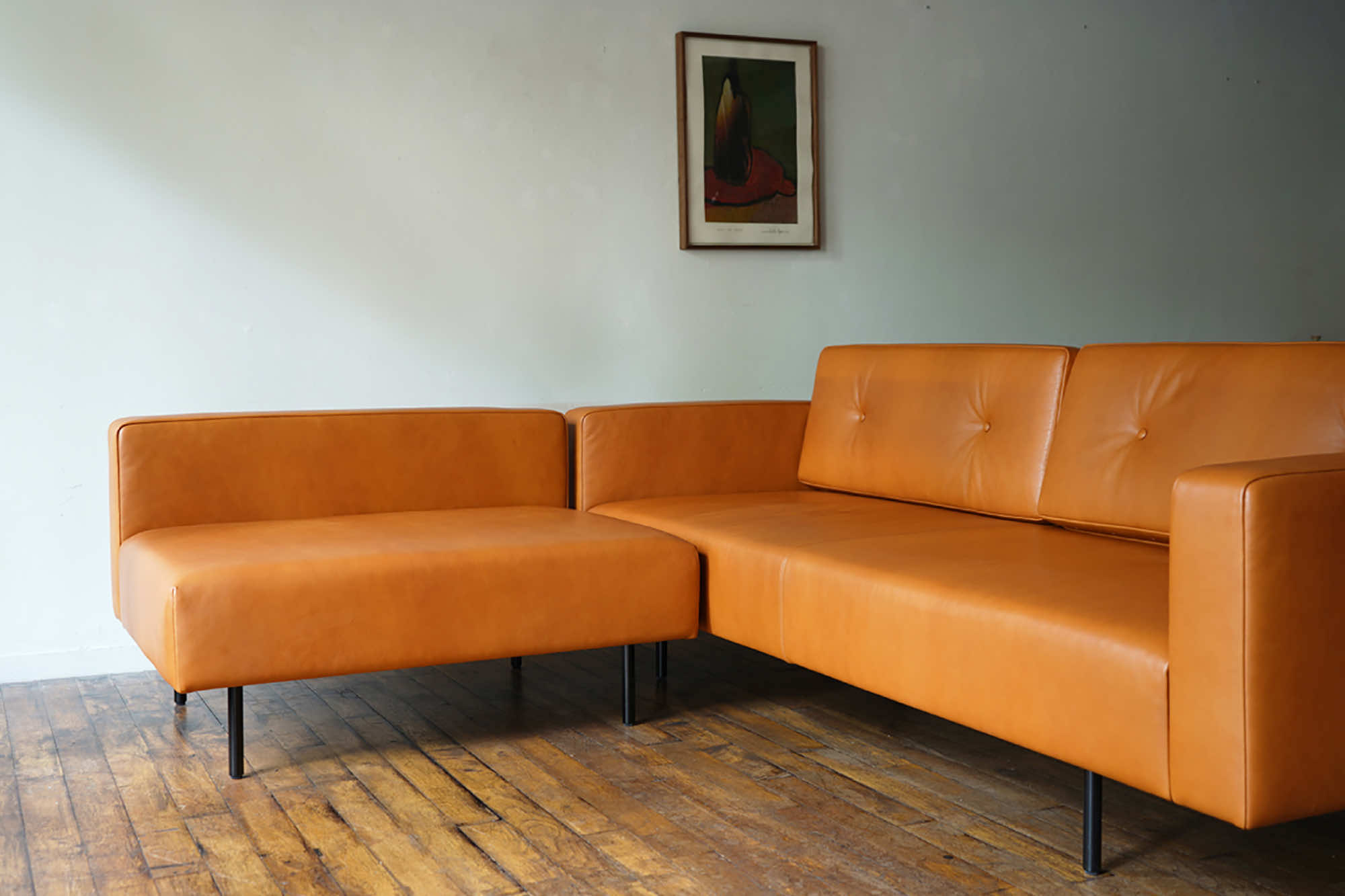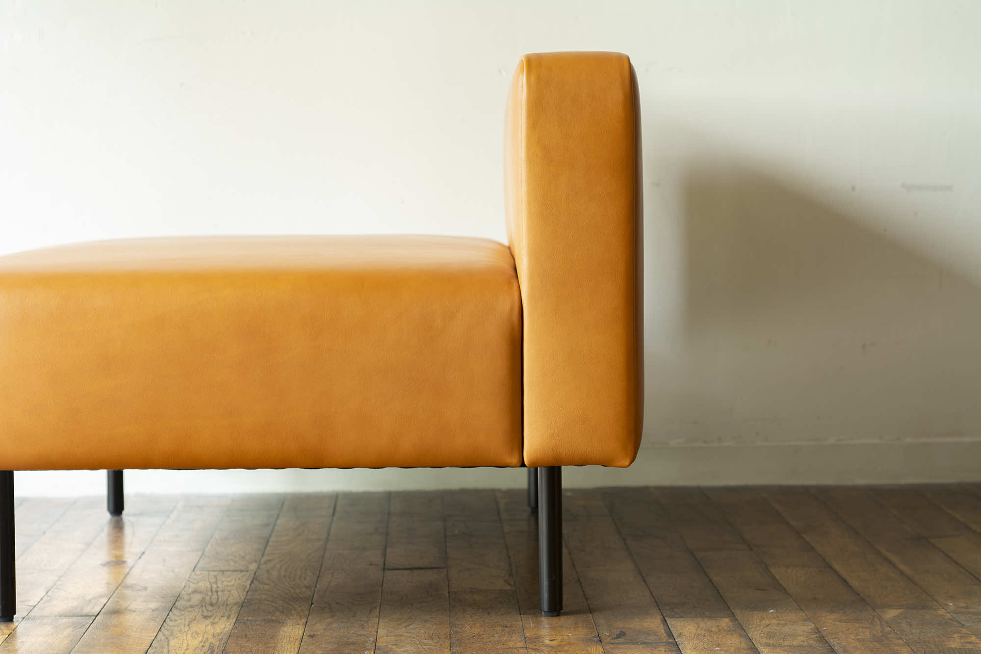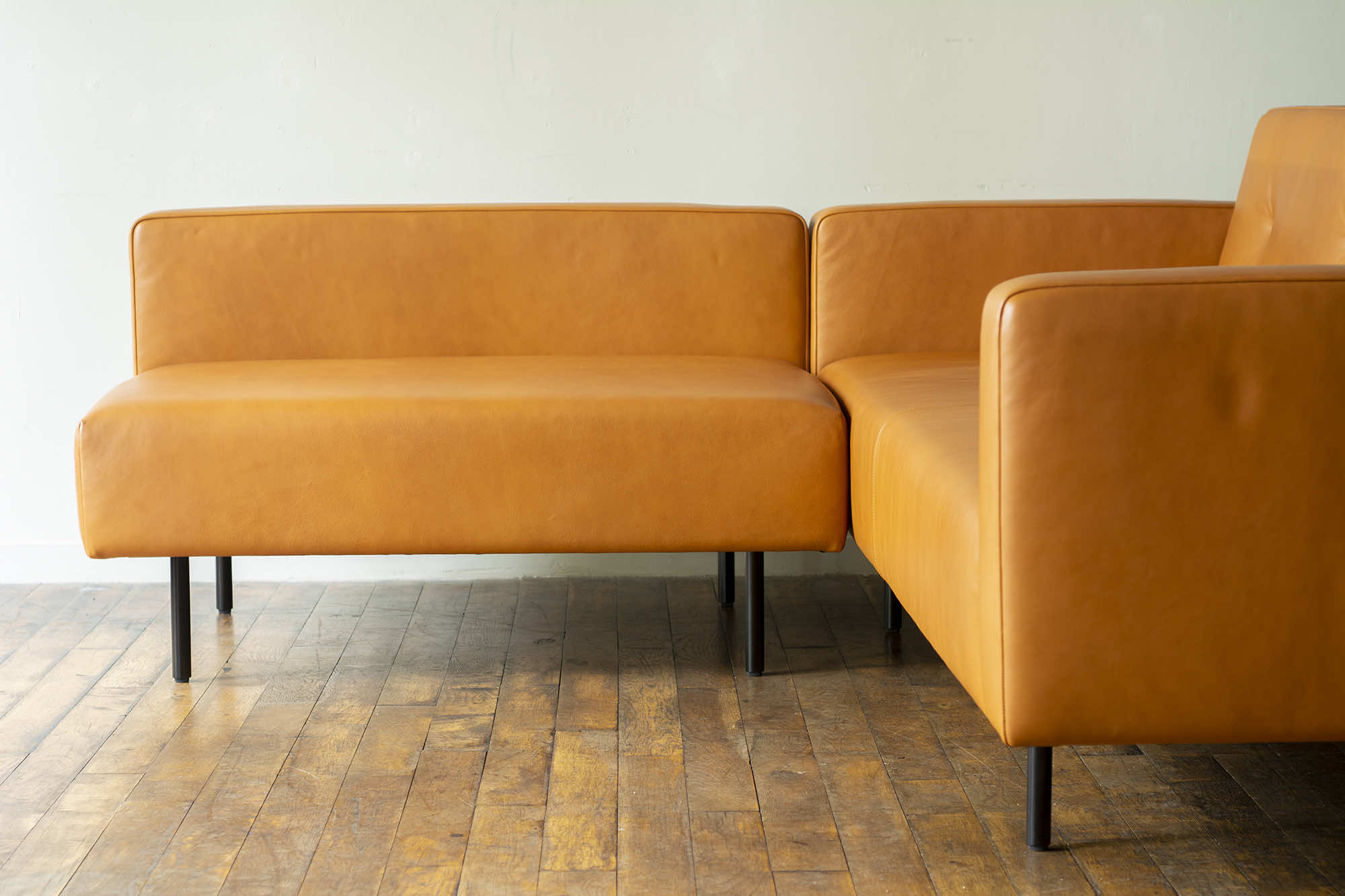 オットマンは、L字型に組んだり、向かい合わせに配置したりと、自由なレイアウトが可能です。背もたれ付きと背もたれなしの2タイプを展開しています。
