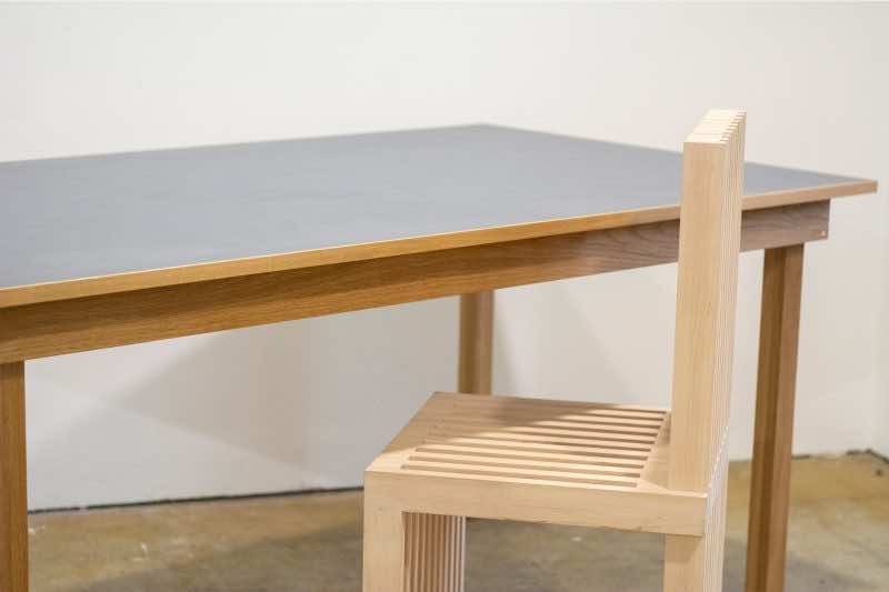 シリーズの出発点は、木製脚によるテーブルの新規設計にあり、従来の「Tights Dining Table」がノックダウン(分解可能)に非対応であった課題を踏まえ、ユニット構造による分解・再組立て可能な仕様を新たに採用しています。