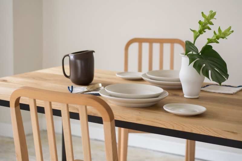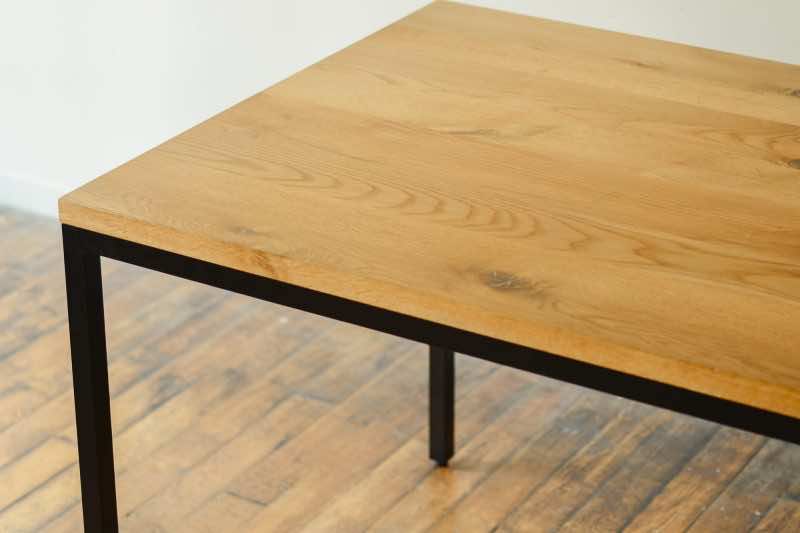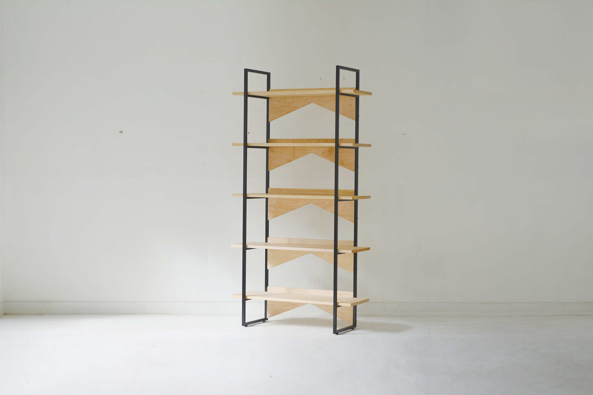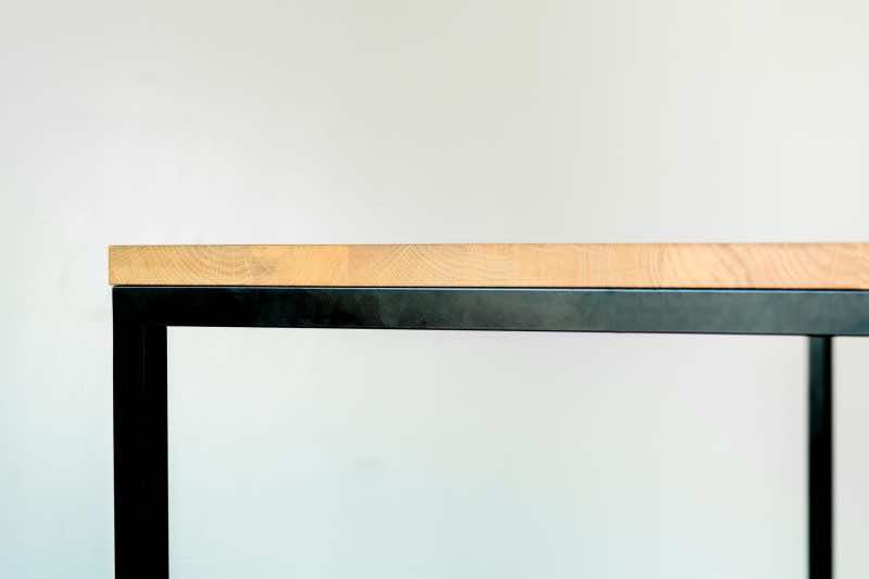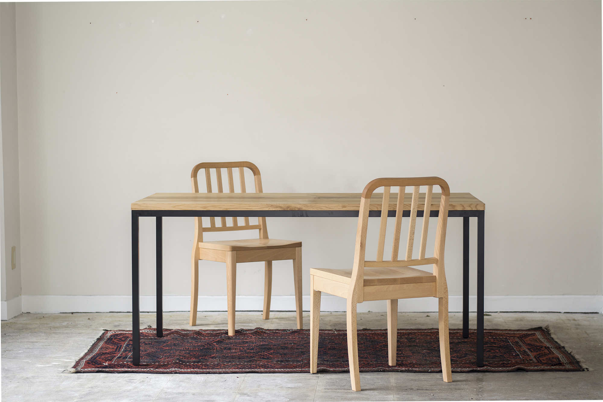 木材とスチールという異素材のコンビネーションを採用し、直線構成のみで構築された、極めてミニマルな意匠を特徴とするシリーズです。