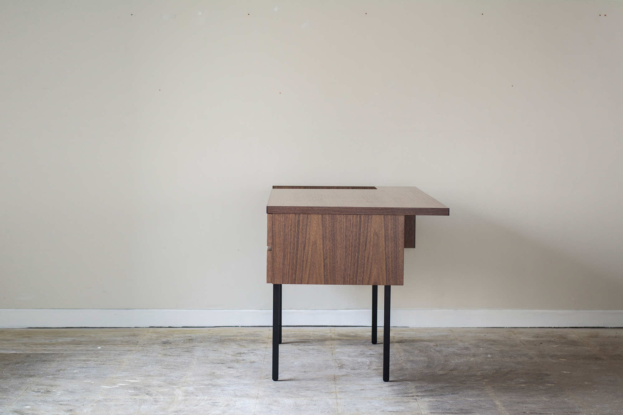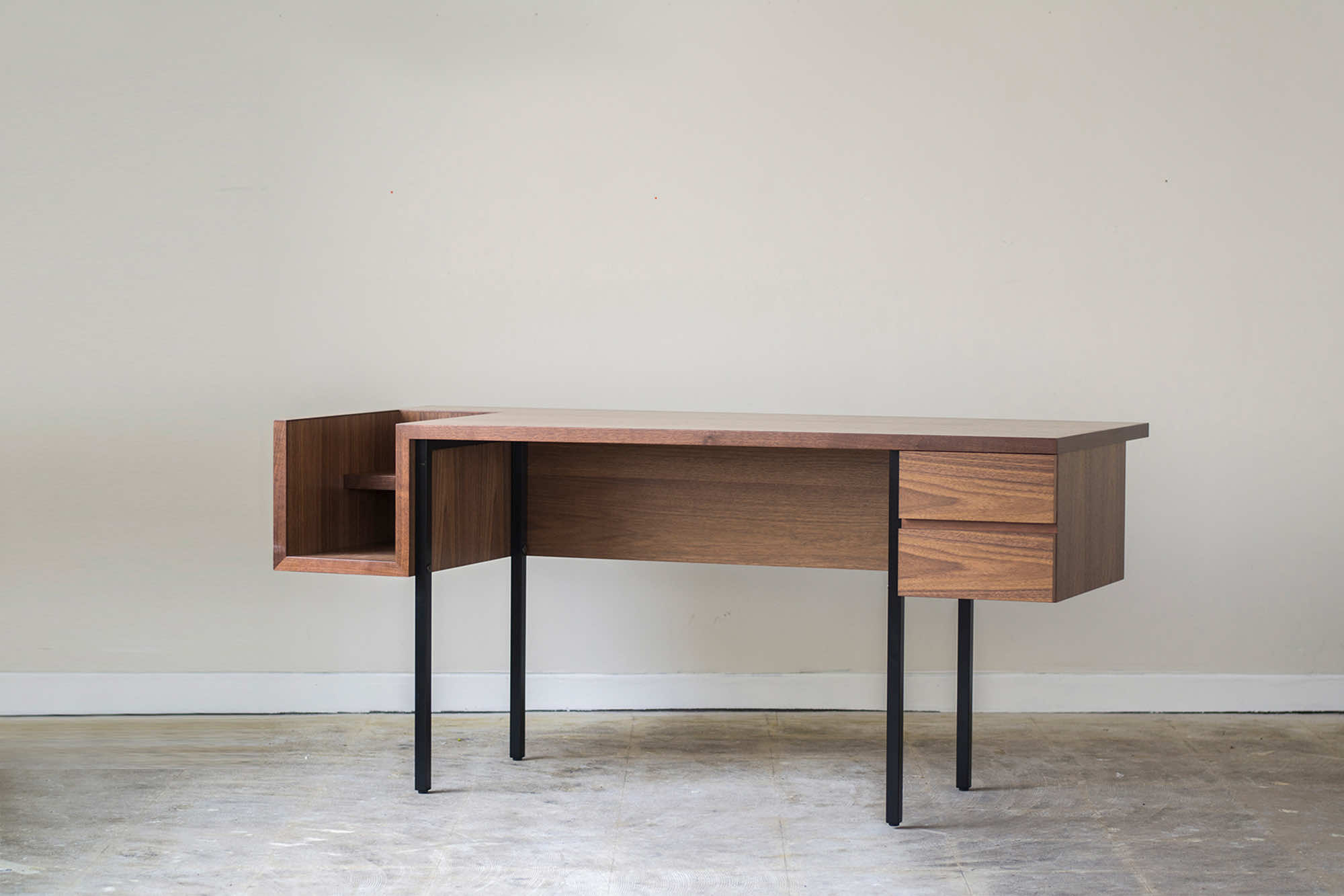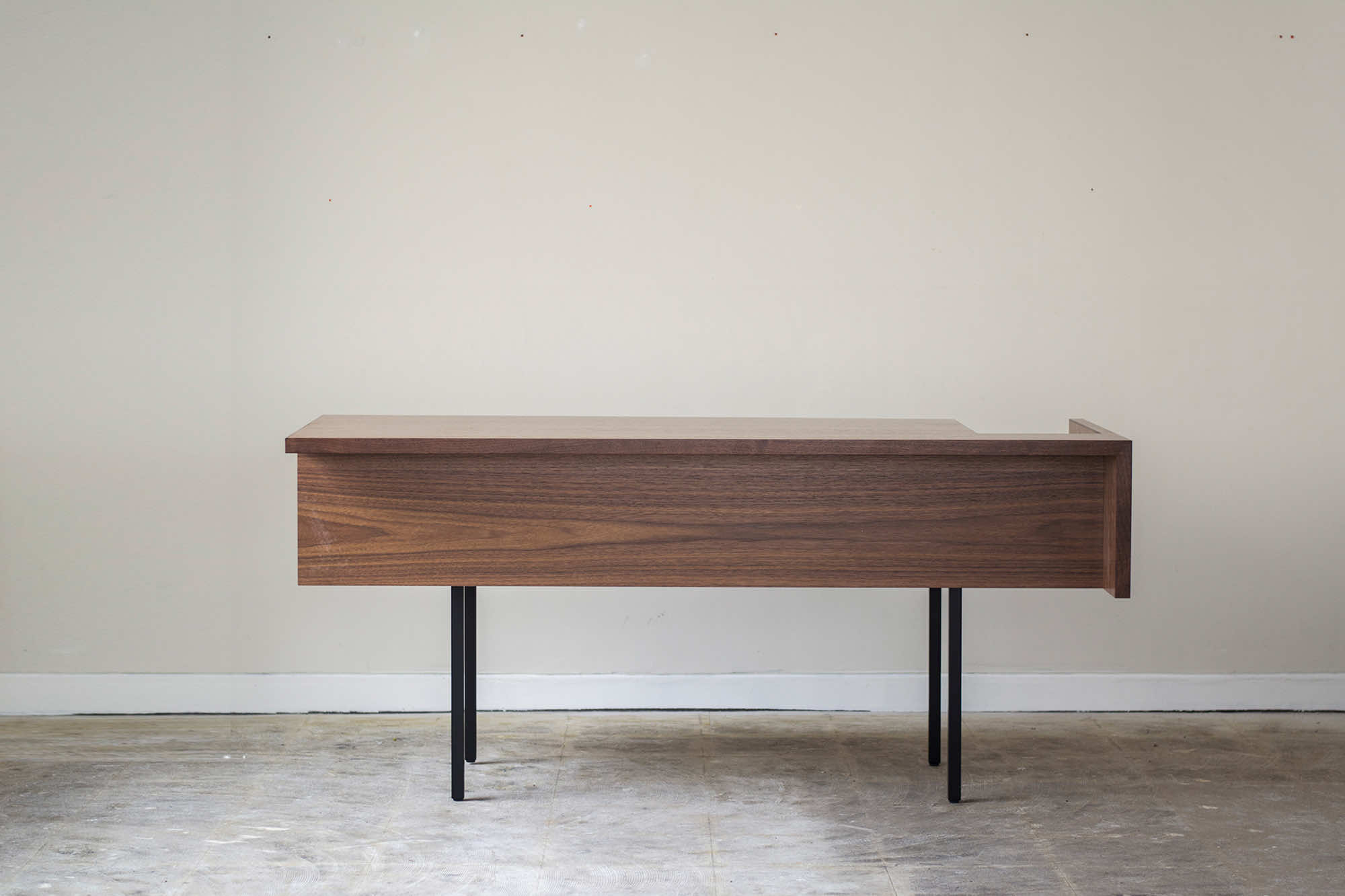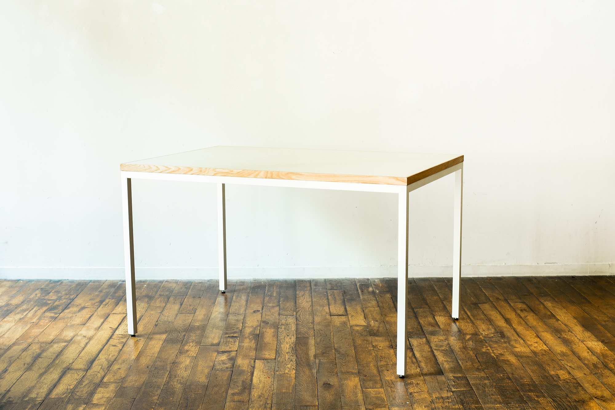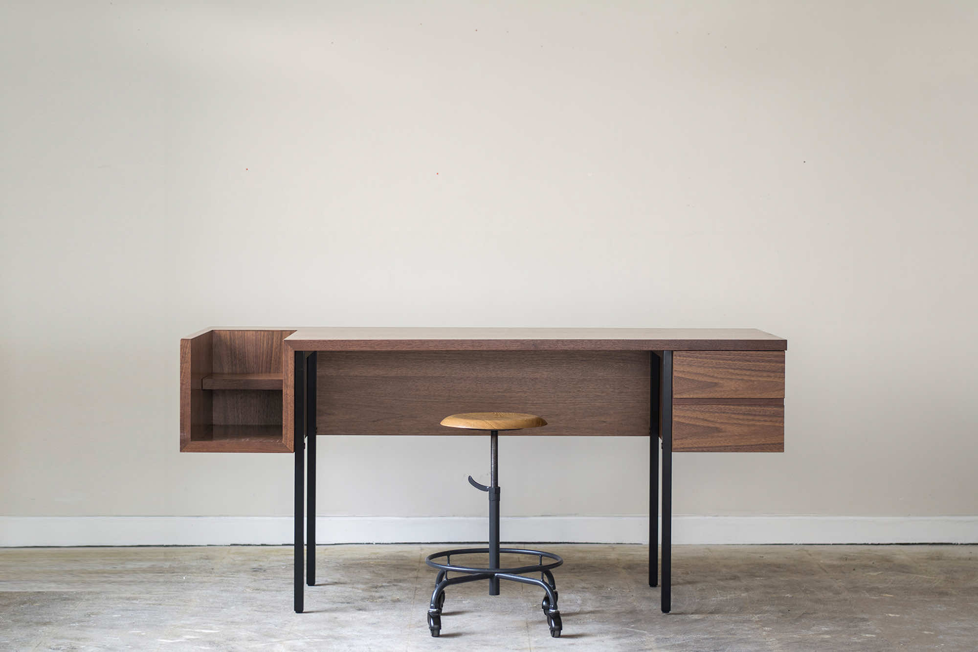 一見ストイックとも言える造形ながら、シンプルな構造体であるがゆえにカスタマイズ性が高く、過去にはテーブルトップ下部に収納棚を設けたモデルや、文房具等を整理収納できる引き出し付き仕様、三方を囲う幕板付きバージョンなど、使用環境に応じた多様なバリエーションが展開されてきました。