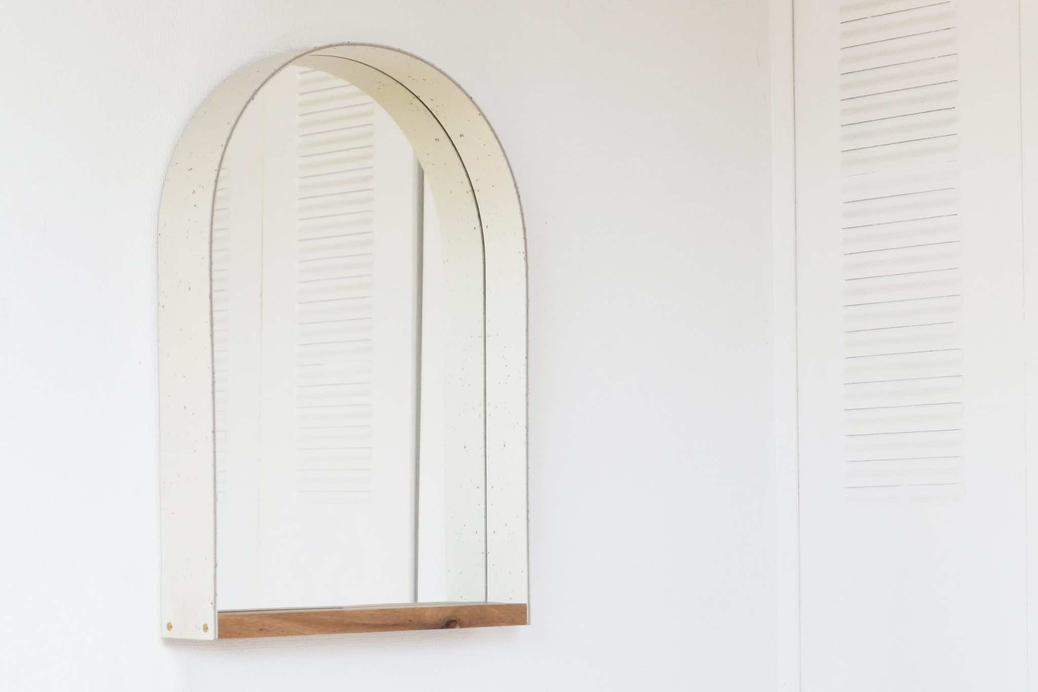 ランドスケーププロダクツの家具にもこの素材を取り入れられないかと資料を見ていたところ、面材でありながら可塑性が高く、床から壁へ緩やかに立ち上げたり、曲面成形ができるという素晴らしい特性に気づきました。