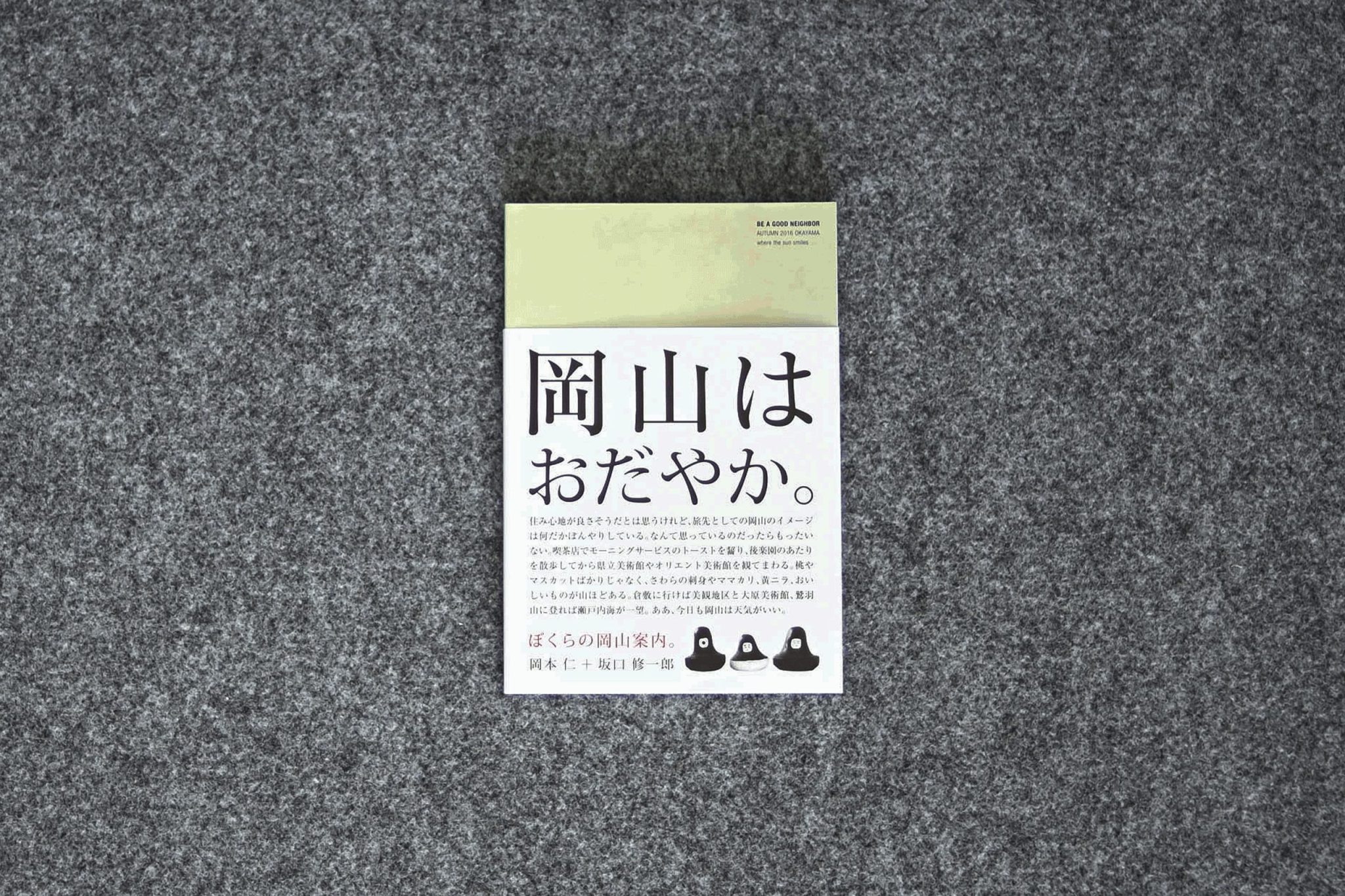 もしかしたら岡山は旅行先としては地味と感じる人がいるかもしれません。でも一度でもこのおだやかな土地に魅了されると、何度でも通いたくなる場所です。誰かが岡山を旅行しようとする時に、ぼくらが紹介したいのは、その土地に暮らす人たちが当たり前のこととして享受しているものです。そこには観光的な派手さはありませんが、ゆっくりと時間をかけて自分の身体に染み込んでいき、やがて心を和ませてくれます。このガイドブックは、一般の旅行ガイドとは少し違う視点で、あらためて見つけた岡山県の魅力を集めたものです。