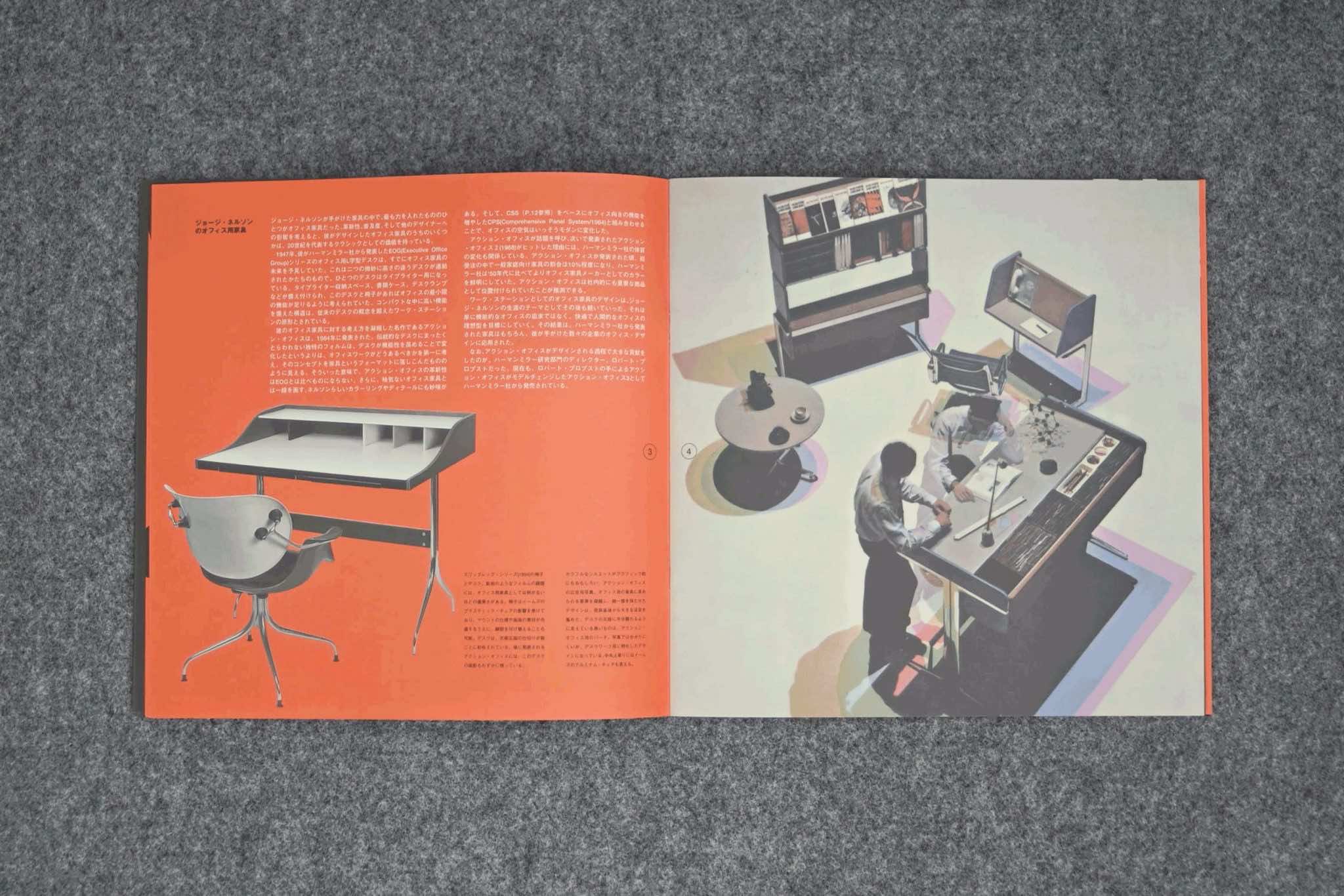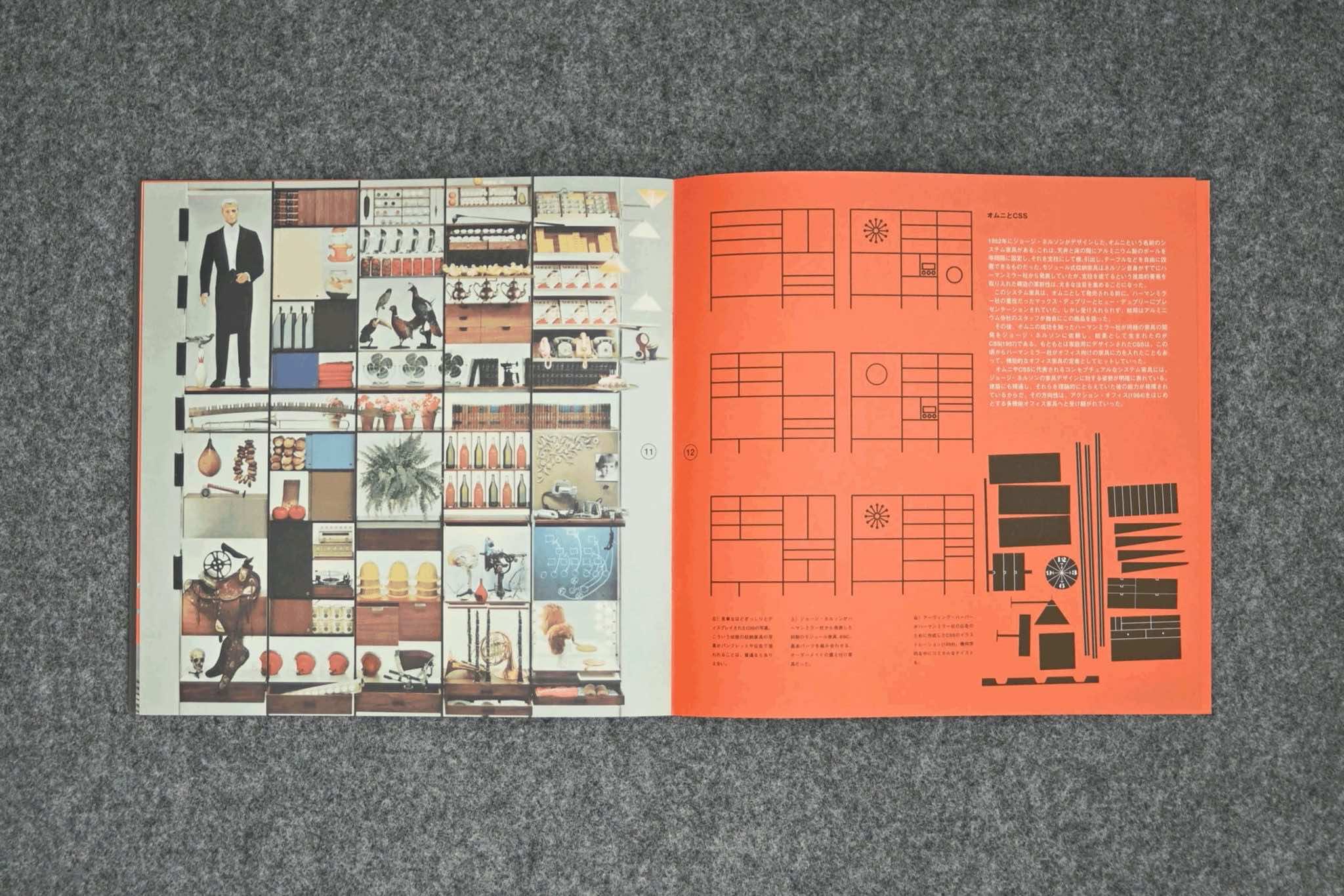 1960年代にジョージ・ネルソンアソシエイツに勤務していた山内陸平氏の序文を皮切りに、ネルソンのデザインディレクターや執筆家としての多岐に渡る活動、ネルソンアソシエイツのスタッフとの関係等、軽快なグラフィックと共に全ページ日本語解説で紐解く、資料性の高い1冊。