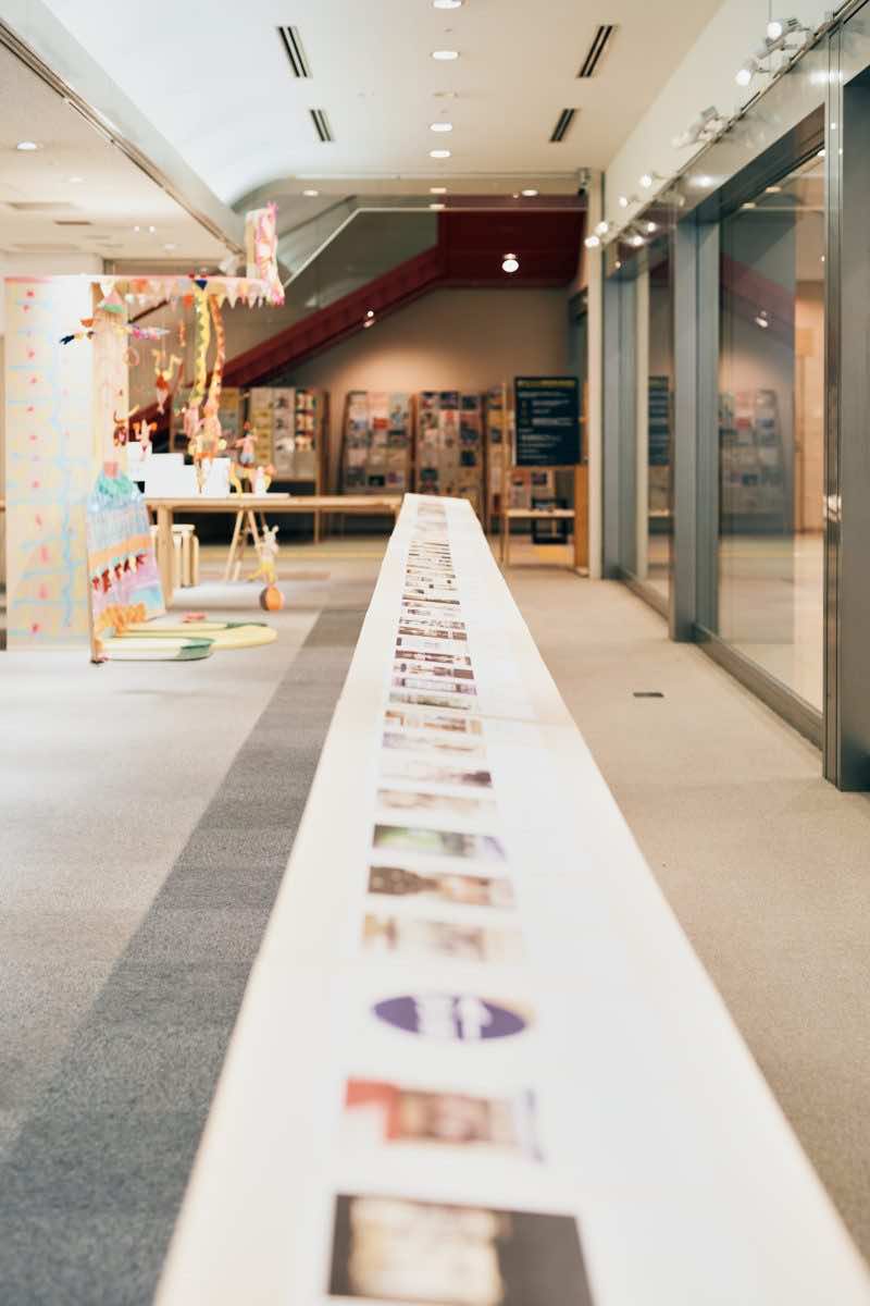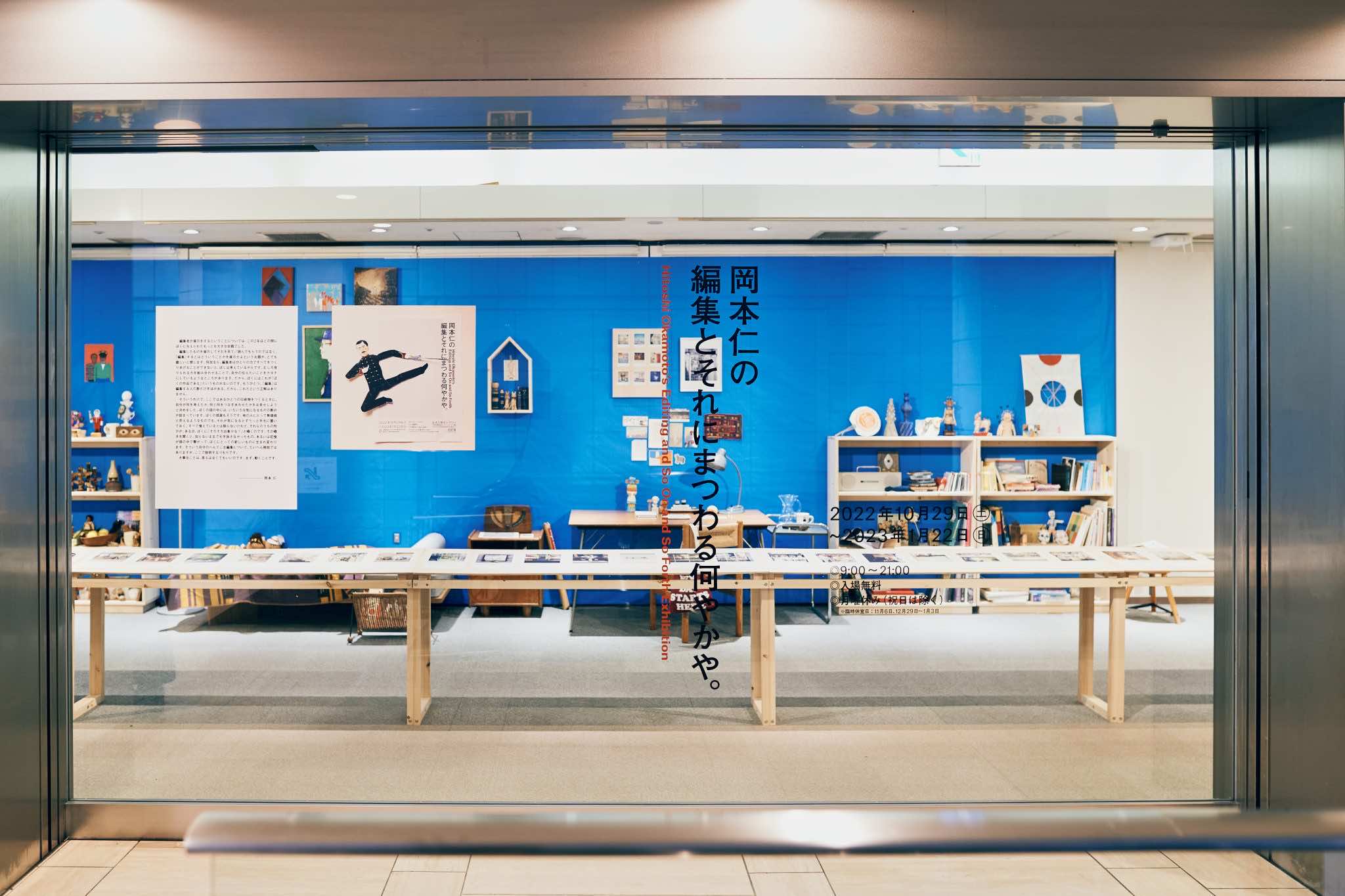 編集者・岡本仁による、編集にまつわる展覧会。iPhoneのカメラロールからピックアップした複数の写真と、直筆のテキストが並ぶ約17メートルにおよぶカウンターは、岡本の思考の流れをたどれるように、直尺のような特異な会場を活かしデザインしました。